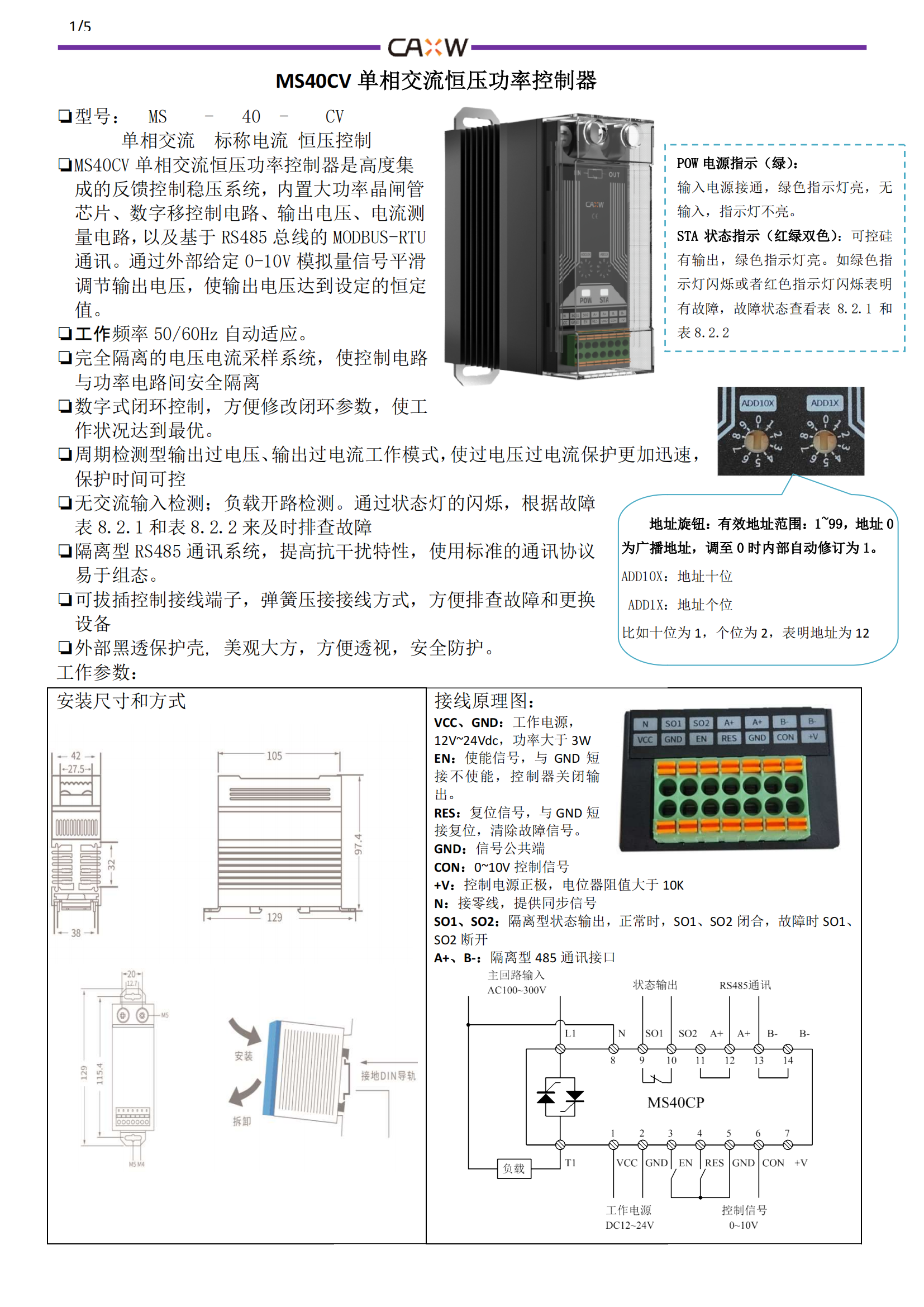 MS40CV單相交流恒壓功率控制器說明書(矽微)